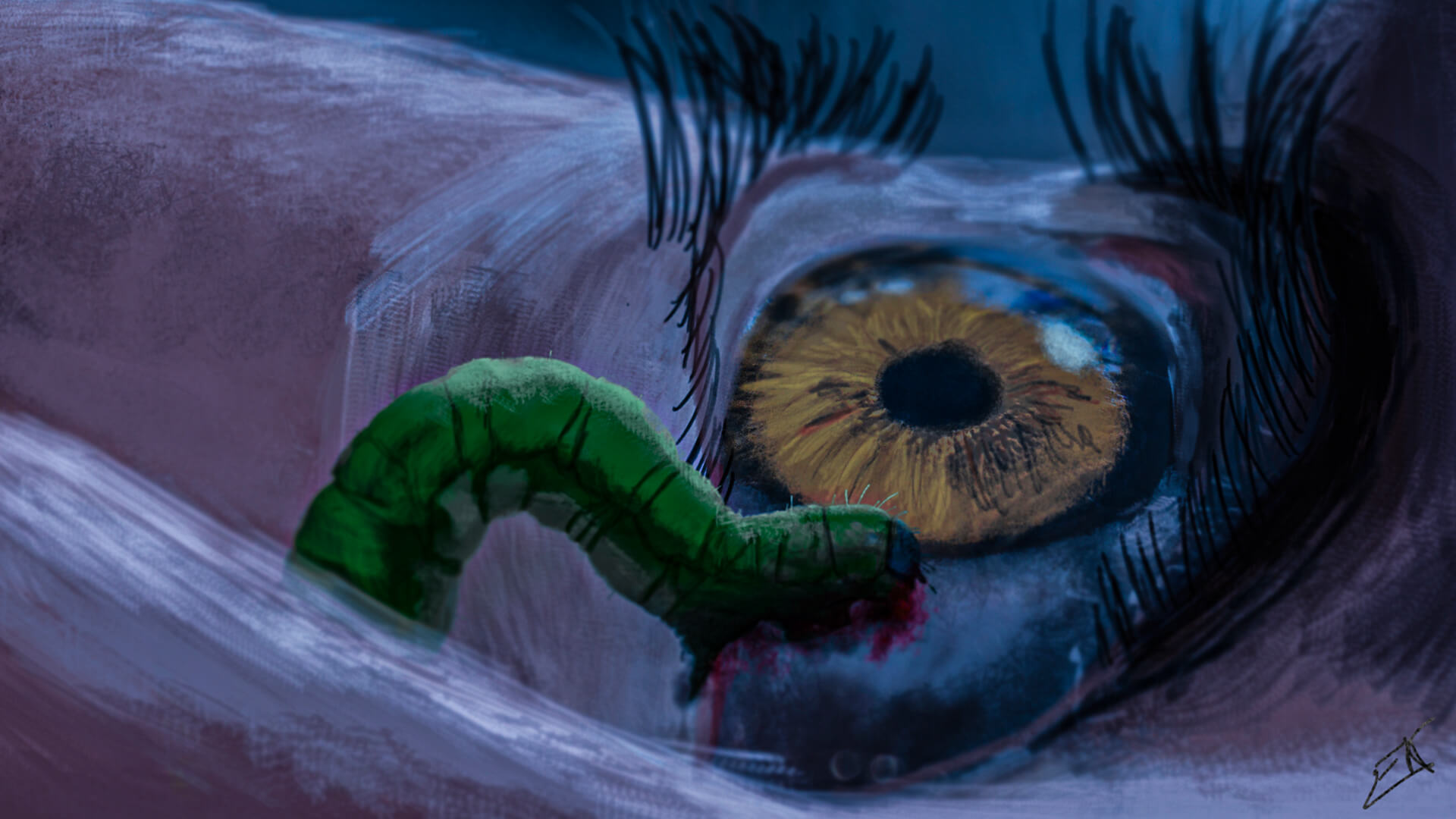 El gusano levantó la mirada. Vio dos ojos mucho más grandes que él, llenos de un temblor acuoso que expresaban miedo y desesperación. El gusano avanzó y empezó a comer.