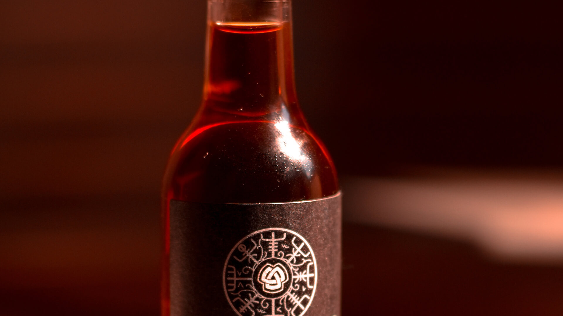 Desenroscó la tapa de la botellita de vodka y el líquido fluyó hacia arriba.